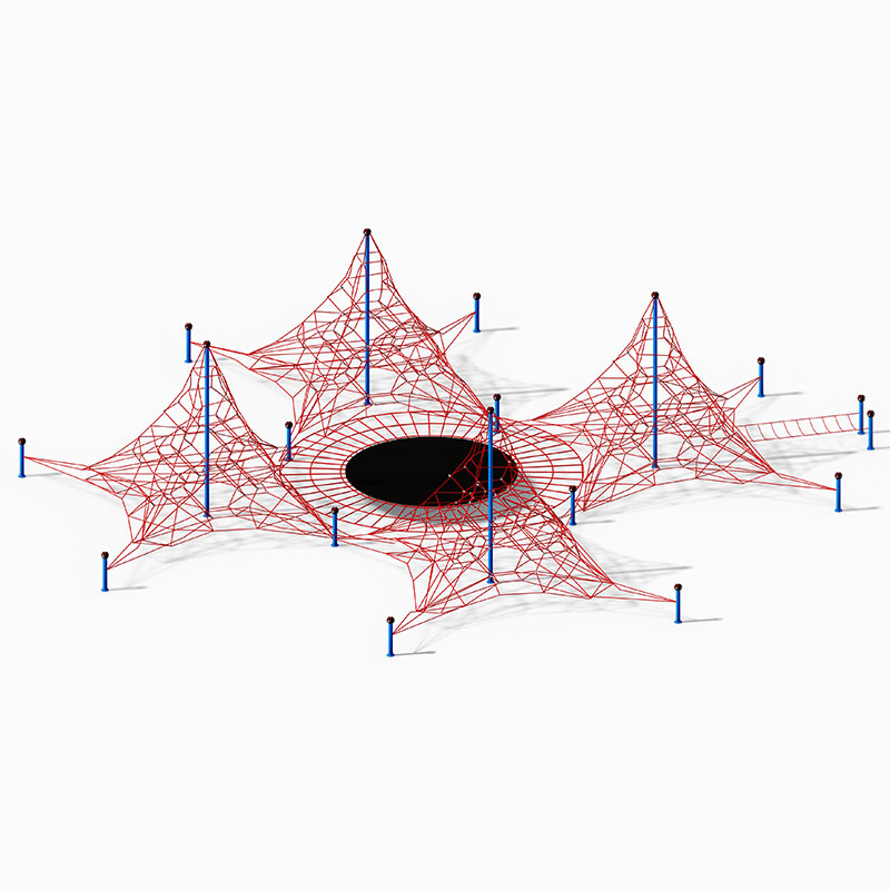3-12 वर्ष की आयु के बच्चों के लिए डिज़ाइन किया गया, यह वाणिज्यिक स्टार-आकार का क्लाइंबिंग प्लेग्राउंड उपकरण (एक शीर्ष स्तरीय नेट प्लेग्राउंड विकल्प) में एक विशाल वेब-शैली रस्सी नेट संरचना और एक केंद्रीय ट्रैम्पोलिन मॉड्यूल है।