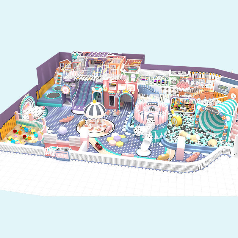 यह मैकरॉन श्रृंखला वाणिज्यिक पेस्टल रंग इनडोर खेल का मैदान एक ज्वलंत भूलभुलैया इनडोर खेल का मैदान के रूप में दोगुना हो जाता है, जो 3-12 वर्ष की आयु के बच्चों के लिए इमर्सिव थीम वाले ज़ोन (घूर्णन हिंडोला, बहु-स्तरीय बॉल पिट, घुमावदार स्लाइड गलियारे और रोल-प्ले 'कैफ़े' नुक्कड़) के साथ तैयार किया गया है।