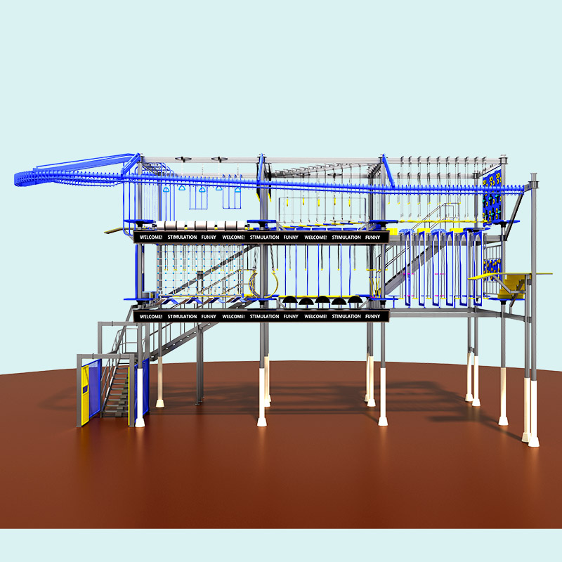 मॉल के लिए यह हाई रोप्स कोर्स औद्योगिक-ठाठ नीले-पीले सौंदर्यशास्त्र को मजबूत निर्माण गुणवत्ता के साथ जोड़ता है, जो इसे एक उच्च-प्रदर्शन अवकाश आकर्षण बनाता है जो वाणिज्यिक और शिविर वातावरण की उच्च-यातायात मांगों को पूरा करता है।